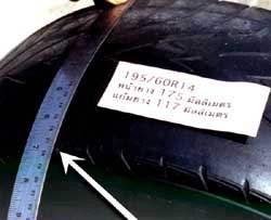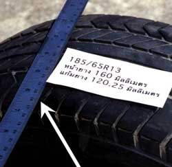 ความกว้างของยาง วัดจากส่วนที่ป่องสุดของยาง ซึ่งหน้ายางที่สัมผัสพื้นจริงๆ จะแคบกว่าประมาณ 15-35 มิลลิเมตร