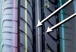 จุดสังเกตของยางบางรุ่นอยู่บนแก้มยาง บางรุ่นอยู่ใกล้กับดอกยางช่วงริมนอก