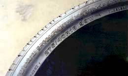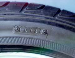 ตัวเลขบอกวันผลิตยางของยางรถยนต์บางรุ่น โดยเฉพาะที่ผลิตในไทย เป็นแบบรหัสแม่พิมพ์ ต้องเปิดตารางเทียบ ซึ่งผู้ผลิตมักไม่เปิดเผย(ในภาพเดาว่า เลข 0 คือ เลขท้ายของปี 2000 แต่ก็ไม่มีการยืนยัน